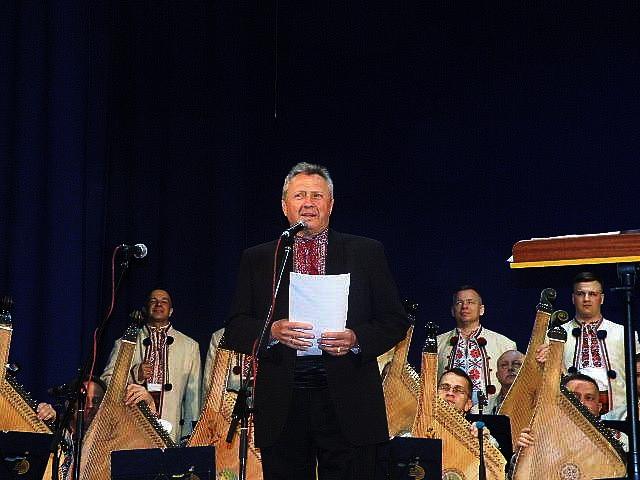 Тож коли довідався про те, що 13 травня Національна заслужена капела бандуристів України імені Георгія Майбороди виступить із концертом “Пісенна Україна” в Палаці культури міста Луцька, спомини дитинства озвалися з новою силою, і не відпускали впродовж усього дійства, яке розпочалося виконанням пісні “На зорі мене, мамо, збуди”. Багато хто її вважає народною, але, як розповів художній керівник та головний диригент капели, народний артист України Юрій Курач, твір був написаний 1958 року викладачем Ніжинського училища культури і мистецтв імені Марії Заньковецької Миколою Середою та поетом і педагогом Дмитром Головком. Юрій Володимирович, до речі, блискуче, з соковитим українським гумором, вів згаданий концерт, оголошуючи номери то безпосередньо перед глядачами (коли диригував сам), то за лаштунками (коли місію диригента виконував Олексій Бояр).
