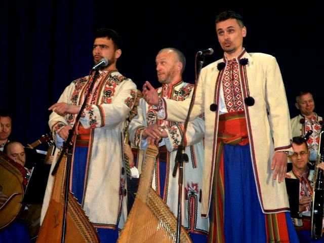 Важко, ‒ та що там, просто неможливо! ‒ уявити Національну заслужену капелу бандуристів України імені Георгія Майбороди без українських народних пісень, які є окрасою цього найстаршого в нашій країні музичного колективу. Слухачам були запропоновані такі зразки українського пісенного фольклору, як “Ой дуб, дуба” (виконав секстет солістів капели), “Скрипка би не грала”, “Ти казала: прийди, прийди” (солісти ‒ Максим Мельник та Денис Кузін), “Одна гора високая” (соліст ‒ Максим Воловоденко), “Із сиром пироги” (солісти ‒ Артем Варивода, Максим Пер’ян та Максим Воловоденко), “Ой служив я в пана” (солісти ‒ заслужений артист України Олексій Савчук і Тарас Козьменко). Останні дві композиції сприймалися, як маленькі музичні вистави комедійного змісту.