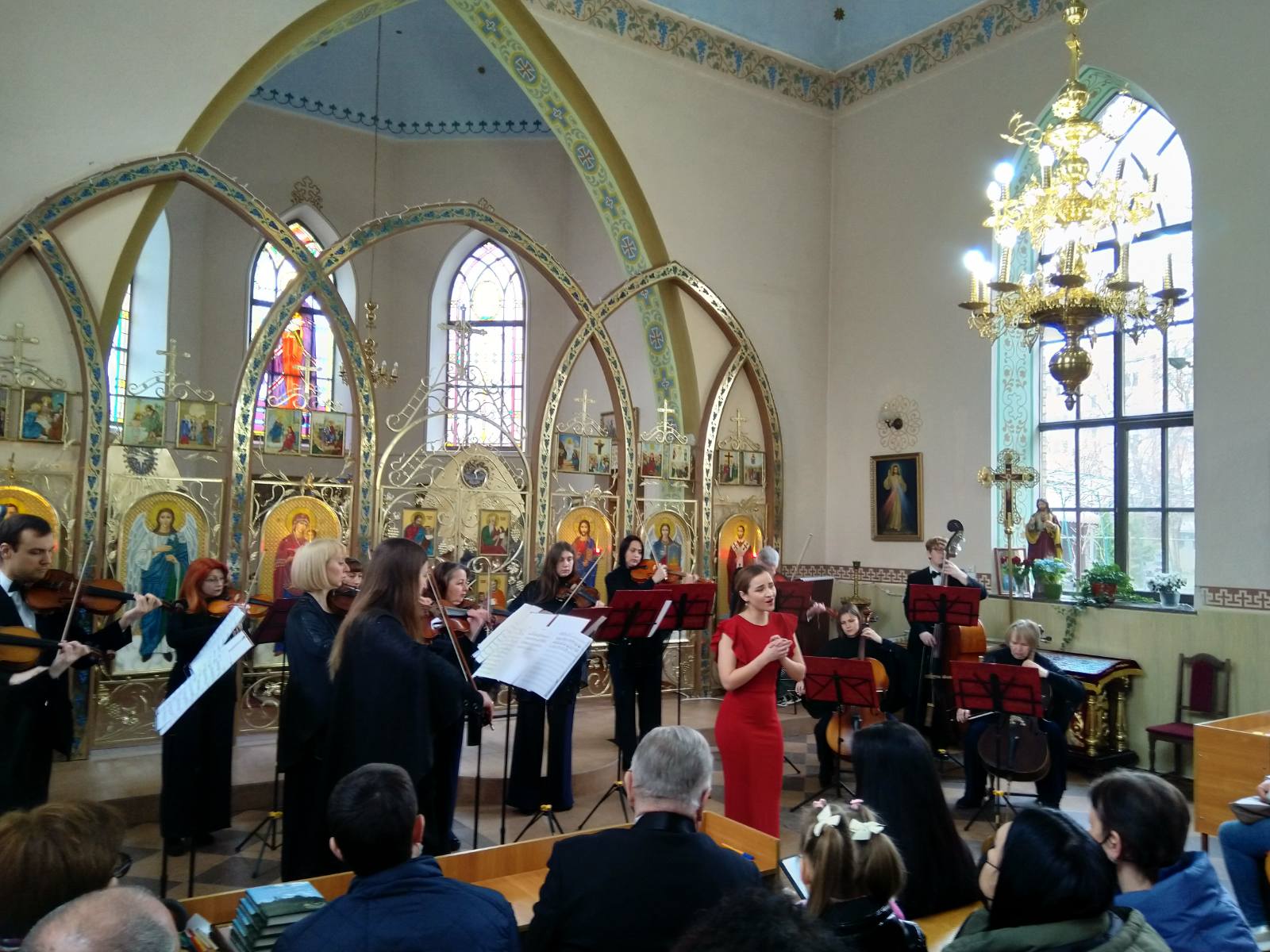 Підтвердженням сказаного вище стало виконання “Сентиментальної сарабанди” ‒ 3-ї частини “Простої симфонії” незрівнянного Бенджаміна Бріттена (я вже колись висловлював версію щодо впливу початку згаданого твору як своєрідного поштовху до написання відомої пісні Олександри Пахмутової та Миколи Добронравова “Ніжність”, яка після загибелі Юрія Гагаріна стала сприйматися як своєрідний реквієм, хоч була написана ще за життя космонавта), “Сарабанди” з Сюїти ре мінор для клавесина Георга Фрідріха Генделя, “Хоралу” Шевченківської лауреатки Ганни Гаврилець, і, звичайно, запам’ятався слухачам виступ молодої талановитої співачки Юлії Єфімчук, яка виконала під акомпанемент “Кантабіле” ще дві версії “Аве Марія” ‒ Джузеппе Верді та Франца Шуберта, а також “Алілуя” Вольфґанґа Амадея Моцарта. Артистка не просто співає ‒ вона ніби пише звукові ікони маріологічного змісту засобами свого сильного й водночас лагідного сопрано, гармонійно підтримуваного оркестровим супроводом.