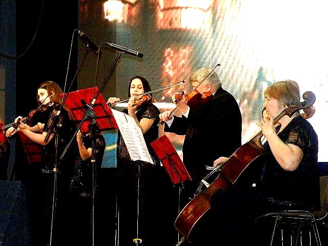 Виступ Василя Чепелюка не обмежився лише двома піснями: коли на сцену вийшла заслужена артистка України Галина Овсійчук, дует виконав пісні “Летять ніби чайки” Юдіфі Рожавської та Лади Реви і “Човен хитається” зі стрілецької лірики Романа Купчинського (артисти вдало ввійшли в образ, а в останній пісні навіть славно станцювали). Сама ж Галина Леонідівна з притаманною їй задушевністю представила слухачам пісню Миколи Халамая на вірші Дмитра Луценка “Я донька синьоокої Волині”, а також неабияк підняла настрій аудиторії жартівливою українською народною піснею “Ось бач, яка я”. Славетним “Танго кохання” Астора П’яццоли розпочав свій виступ Академічного камерного оркестру “Кантабіле” Волинської обласної філармонії (художній керівник – народний артист України, лауреат Міжнародної премії Фонду Міхаеля Стріхаржа “Жезл Йоганна Себастьяна Баха” Товій Рівець). На жаль, сам Товій Михайлович із поважних причин не зміг того дня бути на сцені, але незрима присутність Маестро все ж відчувалася на кожному кроці – у темпераменті й водночас блискучій внутрішній дисципліні музикантів, у їхньому вмінні миттєво навести контакт із залою. В українській мові є гарний військовий термін “вишкіл”. От саме наслідки цього благодатного вишколу й дають змогу музикантам “Кантабіле”, як бійцям культурного фронту, завжди “тримати марку” колективу, “марку Товія Рівця”. Оркестр блискуче проакомпанував лауреатці всеукраїнських та міжнародних конкурсів Анастасії Янцур, яка полонила слухацьку аудиторію своїм голосом та артистизмом, виконавши куплети Аделі з оперети Йоганна Штрауса “Летюча миша” та іскрометний “Поцілунок” Луїджі Ардіті, і, ясна річ, сповна показав себе в інструментальній музиці – Інтермеццо і танець із опери Жоржа Бізе “Кармен” та славнозвісна “Кумпарсіта” Герардо Матоса Родрігеса (виконувалася “на біс”), стали гідним апофеозом програми і, певен, запам’ятаються надовго, стимулюючи до нових таких зустрічей, тим паче, що після завершення дійства ведуча Оксана Єфіменко запросила присутніх на наступні концерти під егідою
