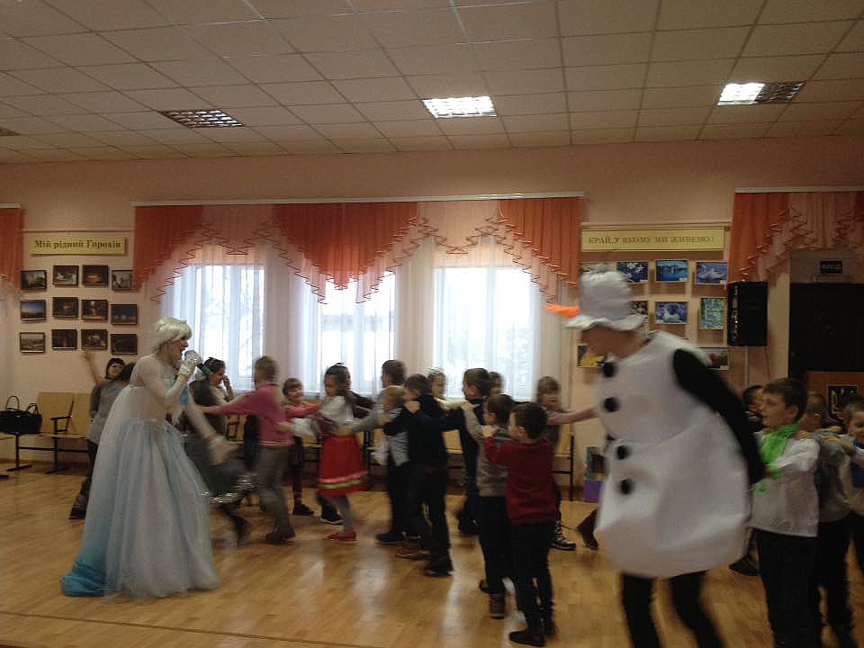Символічна гра у сніжки, “приготування” морозива, "ліплення" сніговиків, інші веселі ігри, пісні, танці не могли залишити байдужими навіть дорослих, котрі прийшли з малятами на свято. І навіть Снігова Королева від дитячих усмішок і добрих побажань “відійшла” від Андерсенівського образу і стала доброю. А класична колядка “Тиха ніч, свята ніч” наповнила залу передчуттям Різдва Христового. Кодою ж дійства, зрозуміло, стали щедрі подарунки від Діда Мороза.