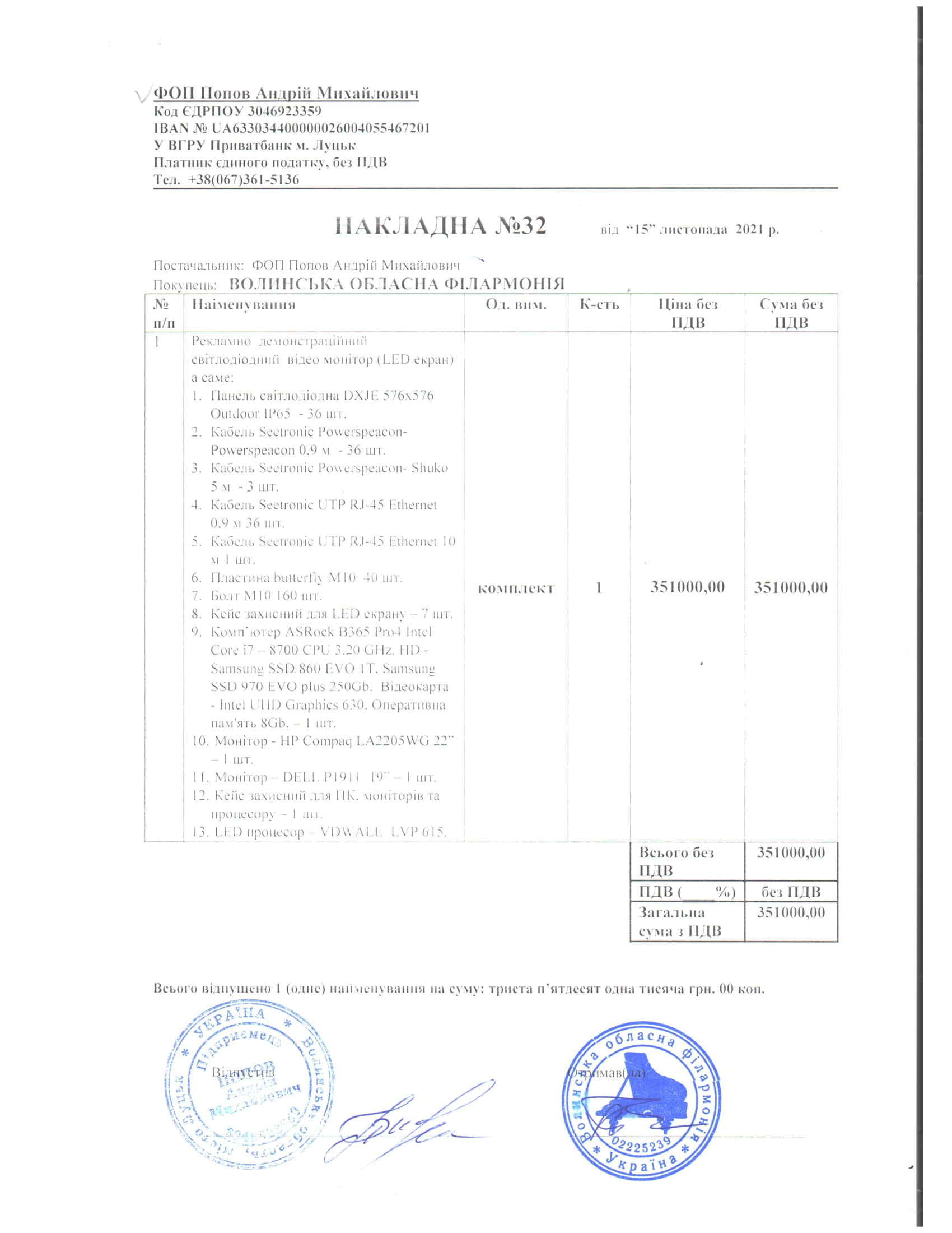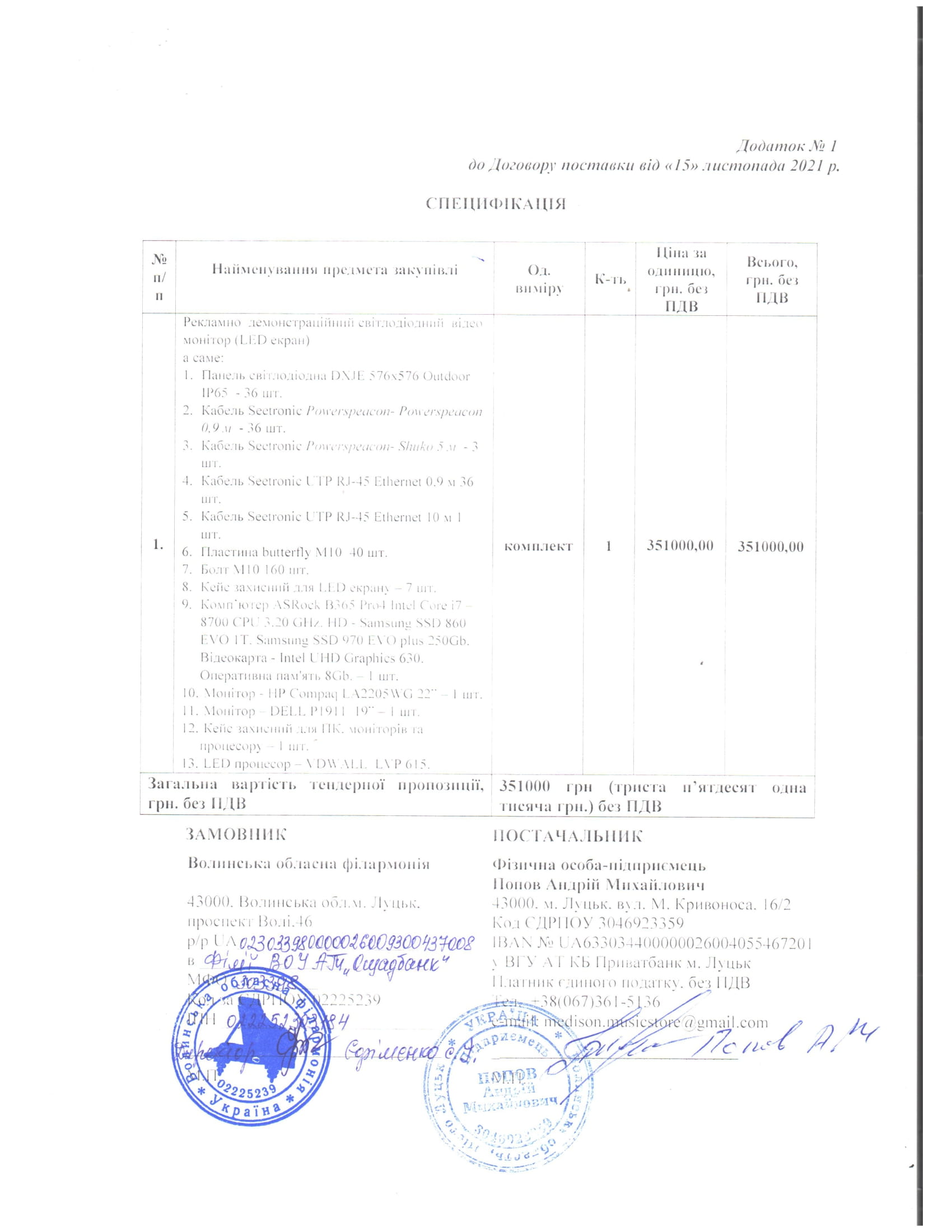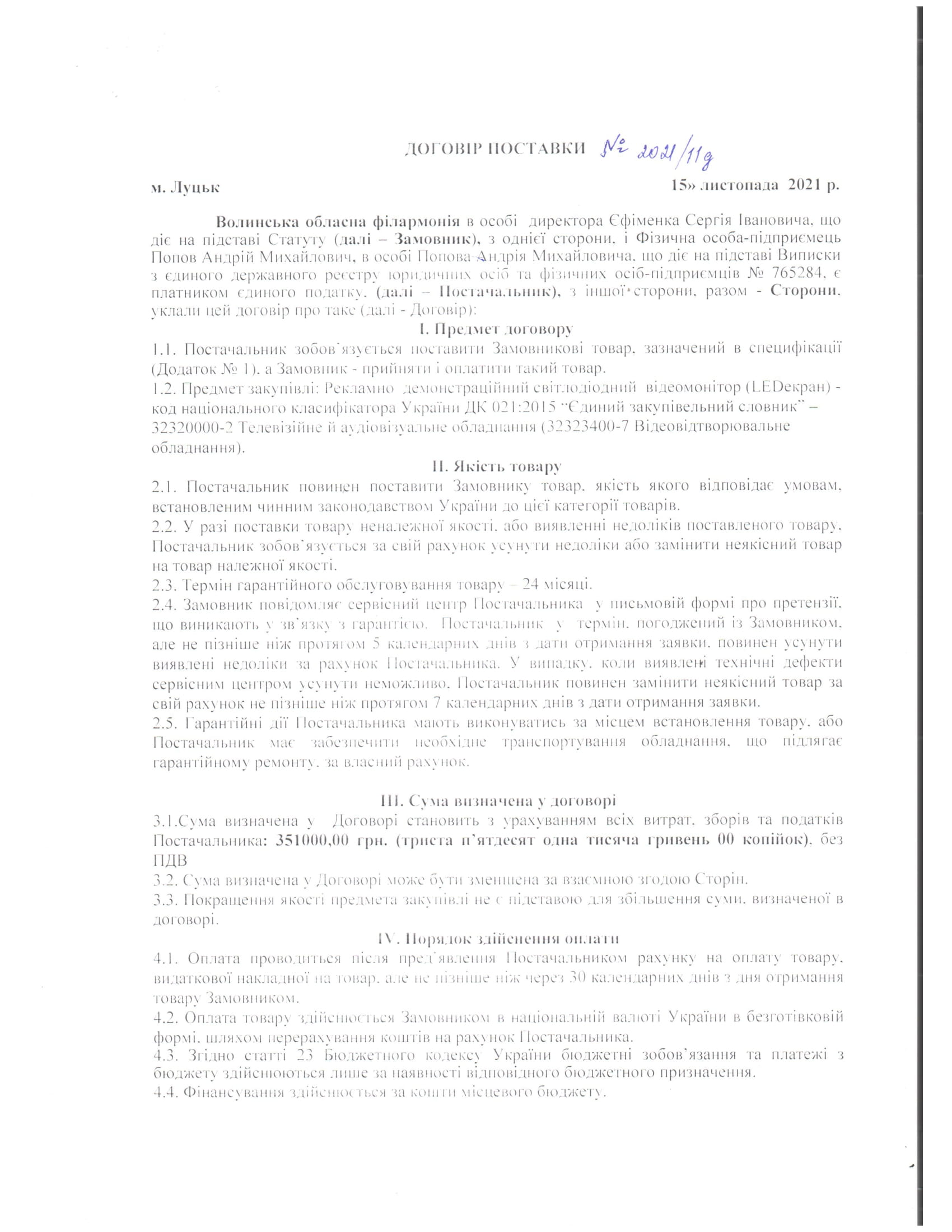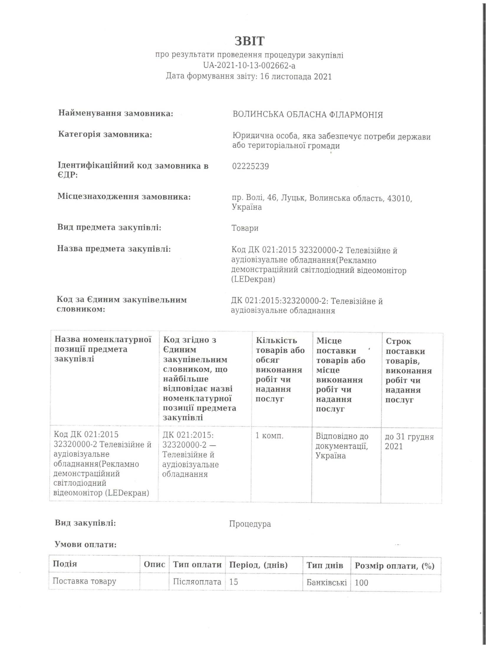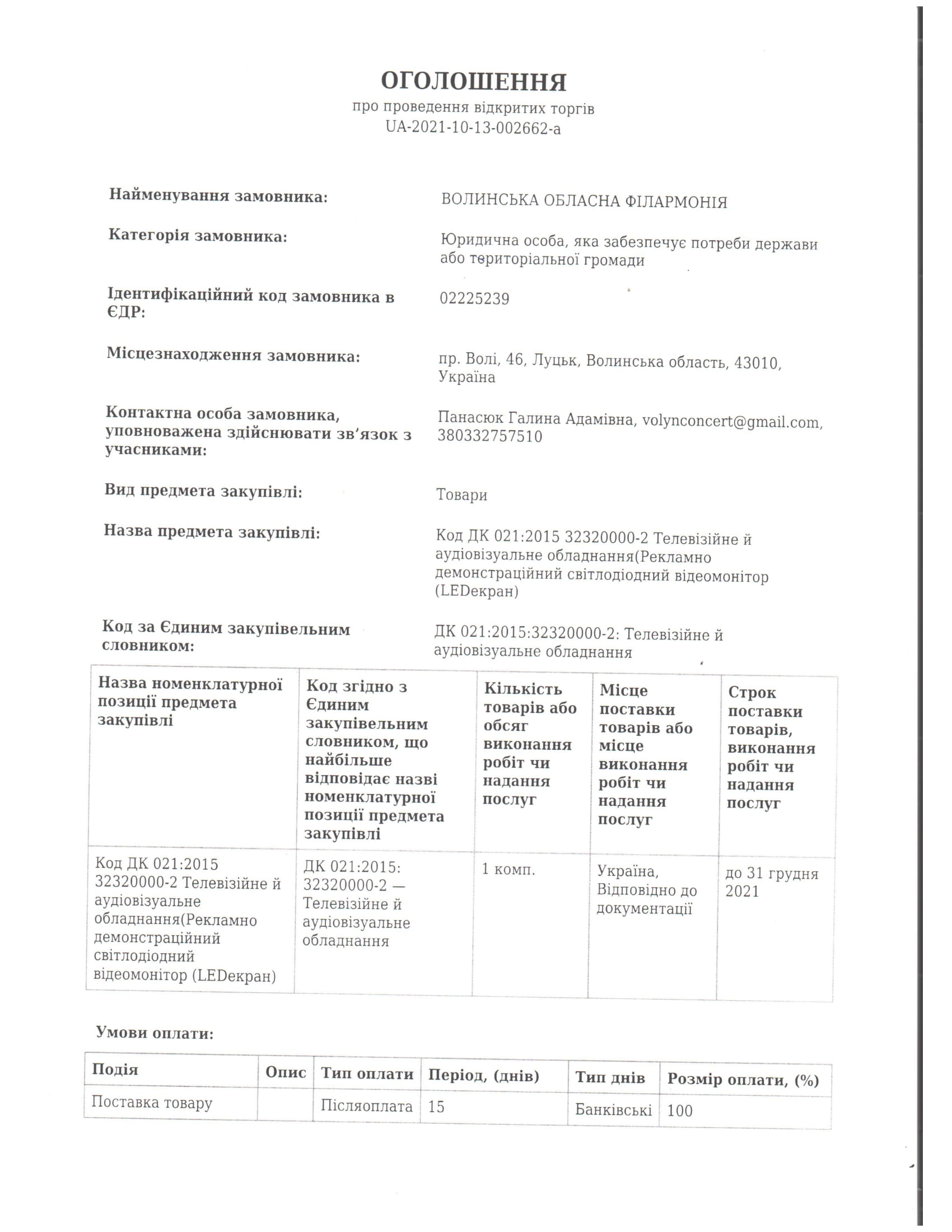 Закупіля LED екрану (відкриті торги) 2021 року