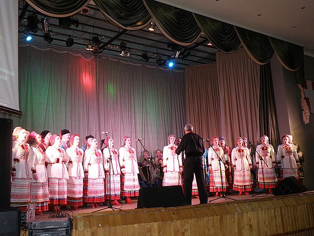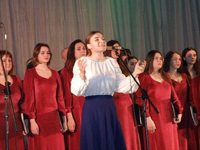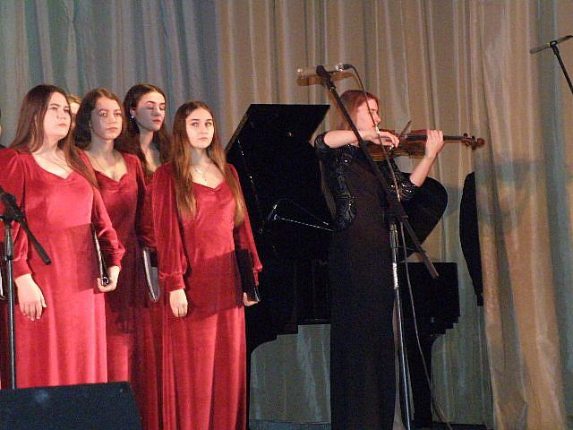 У такому ж лірико-драматичному ключі було витримано й поетично-музичну композицію “До Музи”, побудовану на уривках із творів Лесі Українки – як однойменного вірша, так і поезій “Зимова ніч на чужині”, “Радуйся, Царице”. Виконали її згадана вже Оксана Єфіменко та студентка факультету культури і мистецтв ВНУ Богдана Клявзунік, а супроводом була “Мелодія” Бориса Лятошинського в інтерпретації молодої скрипальки Анастасії Пономарьової (теж студентки згаданого факультету) та піаністки Наталії Коцюрби. Власне, названа композиція відбувалася на тлі факультетського академічного хору, що вже стояв на сцені, тож неважко було здогадатися, що наступний номер представлятимуть саме вони. Цього разу хор акапельно виконав твір Віктора Тиможинського на вірш Лесі Українки “Єсть у мене одна” (солістка – Анна Зарицька), вкотре давши зрозуміти, що там, де за справу береться заслужений діяч мистецтв України Василь Мойсіюк, слухач спокійним не залишиться…
