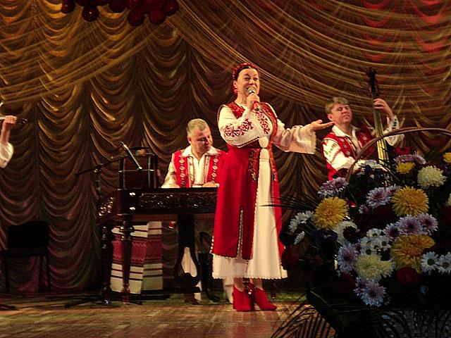 Вдало були підібрані й вокальні номери, якими порадували слухачів Вікторія Мищій (“Ой я знаю, що гріх маю”) та лауреат всеукраїнських та міжнародних конкурсів Андрій Оленин (“Підкручу я чорнії вуса” Володимира Верменича та Андрія М’ястківського, “Мав я раз дівчиноньку” Романа Купчинського – пісні ці стали, по суті, народними). І, звичайно, радісного настрою та усмішок на обличчях слухачів відчутно побільшало після виступу Академічного ансамблю народної музики “Візерунок” (недарома ж у народі вони відомі, як “Веселі галичани” – так величає їх і Вікіпедія). Блок номерів цього колективу вів сам художній керівник – заслужений артист України Мирослав Бабчук, щоразу вражаючи аудиторію зблисками неповторного галицького гумору (Тернопільщина географічно належить до Поділля, але етнокультурно і ментально – до Галичини). До речі, дружина пана Мирослава – заслужена артистка України Світлана Бабчук (як і інша – і теж заслужена, − солістка ансамблю Ірина Гречко) певний час співали у Волинському народному хорі, коли його очолював народний артист України, незабутній Анатолій Пашкевич. Сольні номери обидві співачки представили і у згаданому концерті.
